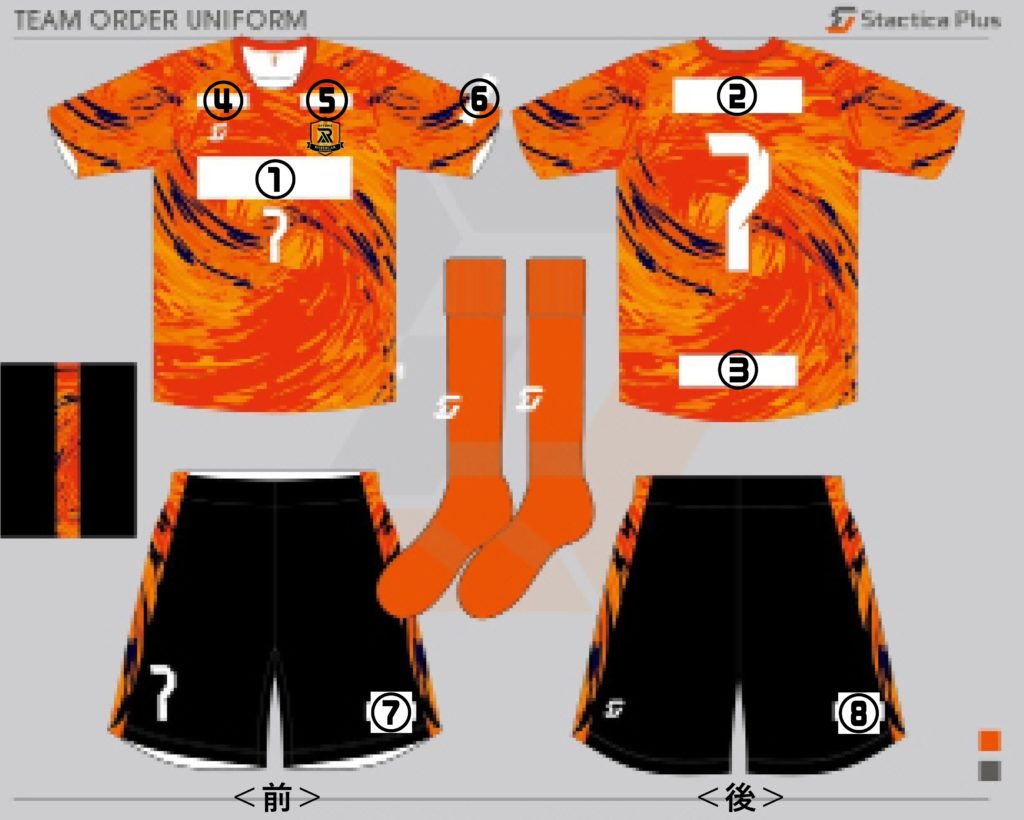 ※1st(FP・GK)、2nd(FP・GK)の計4色のユニフォームを制作予定です。